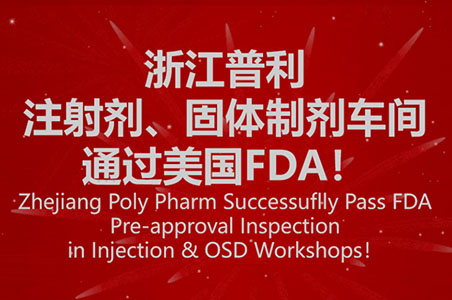 Zhejiang Poly Pharmaceuticals' Injection and Solid Dosage Workshops Receive US FDA Certification